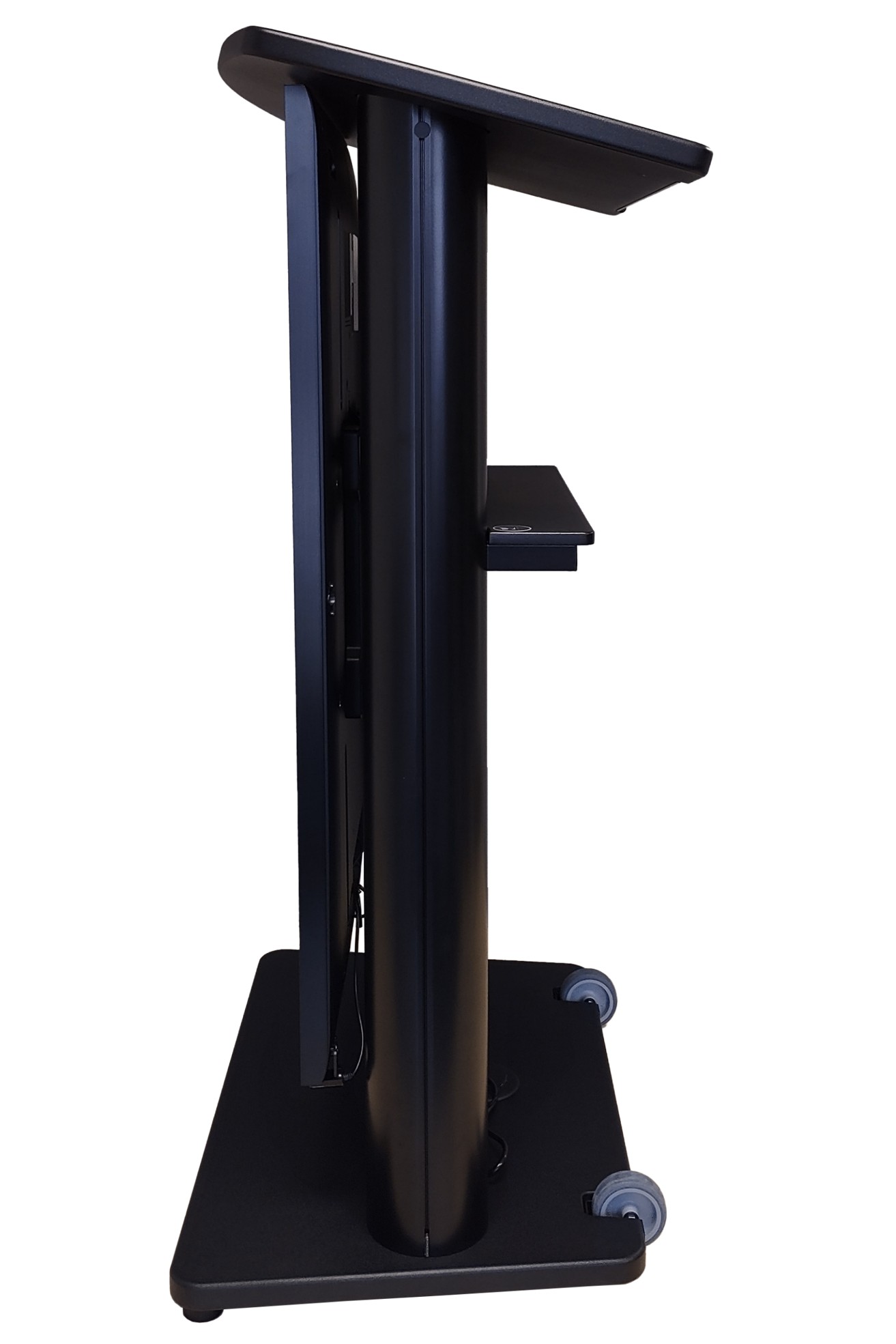 Command attention with the CS2 Deluxe Lectern, now elevated with digital display capability for maximum visual impact. Finished in a refined, all-black powder-coated exterior, this lectern delivers a strong, contemporary presence ideal for corporate stages, educational settings, and high-profile events.